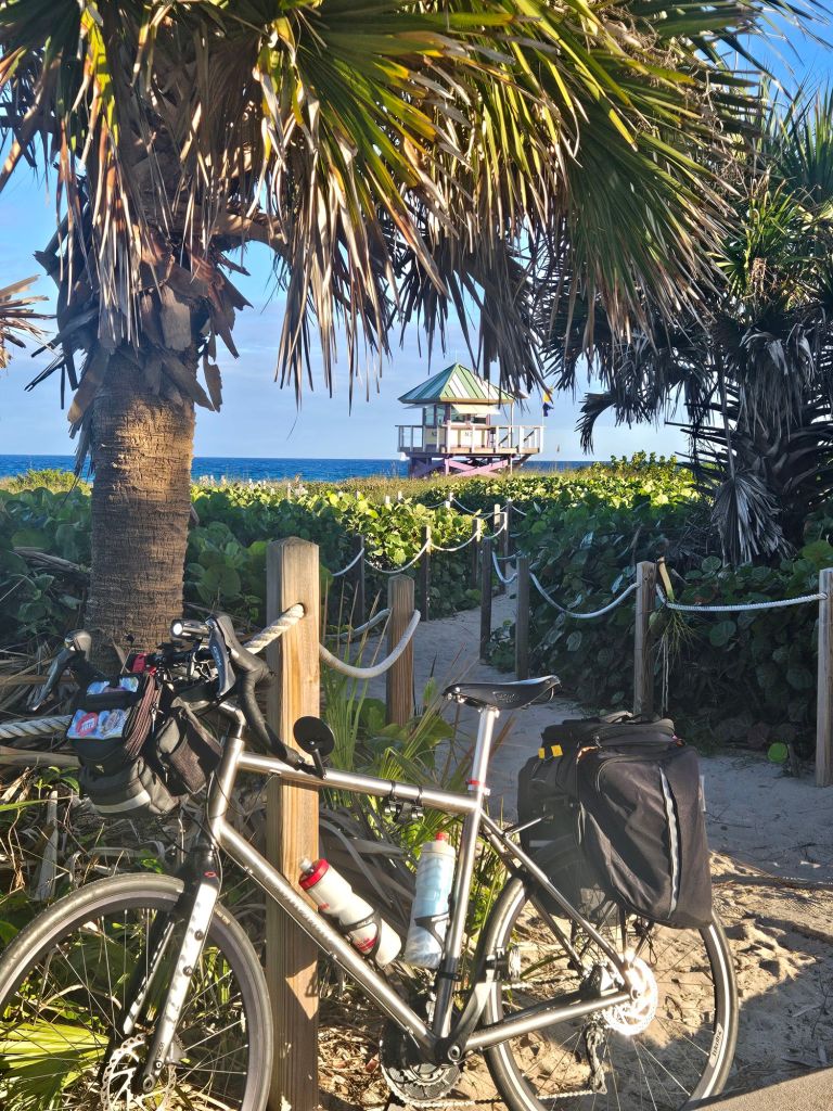 Our fundraising began the first week of December and shortly there after we began training. I feel a little guilty posting my training photos from Florida where it’s been sunny and warm while Jeff is spinning on a trainer in the Pacific Northwest (where it is doing it’s usual thing this time of year….. rain, rain, and rain some more).